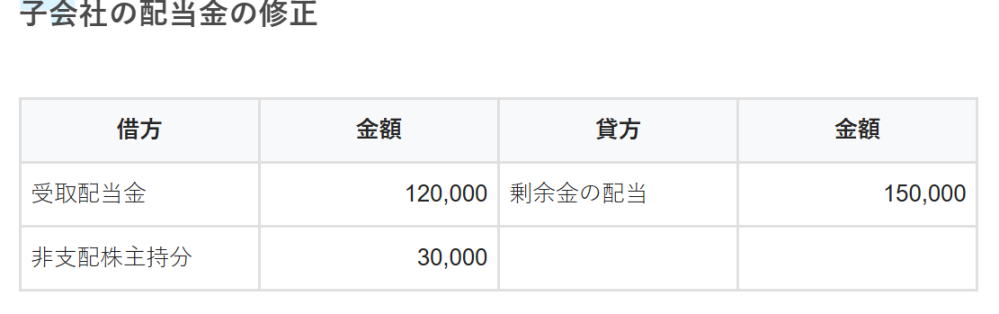 親が受け取った配当金を消す→(ー)12000 子が払った配当金消す→(+)15000 受取配当金マイナスはしますが、それと同時に子会社の支払配当金も無かったことにするので、相殺される感じですかね。