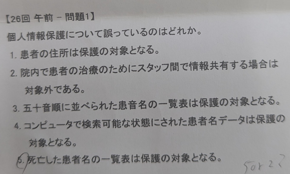 死後も、個人情報は保護されることです 所kぅ印間での女医う法共有は・・・御油無上必要な範囲に限られる 因みに 国試の問題として「スタッフ」と言う言い方は?? 正しくは「職員」「従業員」・・・ 組織の一員として「裏の仕事?」を担うのが“staff”「スタッフ」です。 表で仕事する人の助っ人として裏から支えて、うまく成果が出るように力を貸します。 もっと言い換えたら・・・役職の系列に入っていない職種? 参謀?のような人を言う言葉です stuffに対する言葉・・英語ではラインと言います ついでに「社員」も本来の社員は 資本金を出資している人で、働入れ居る人で、働いている人は・・・ 従業員です